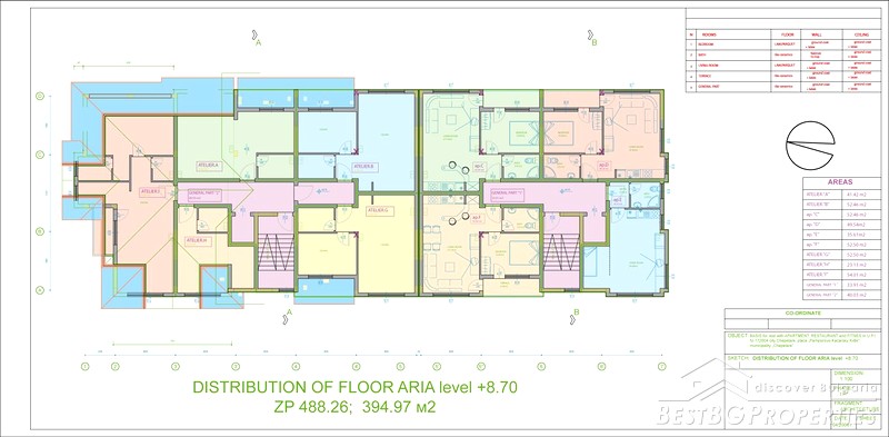 The hotel has 40 spacious apartments and suites with balconies, restaurant and fitness. The apartments are from 32 - 62 sq. m. with price from € 770 to 900 per sq. m.