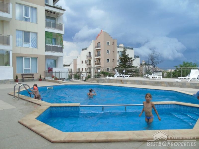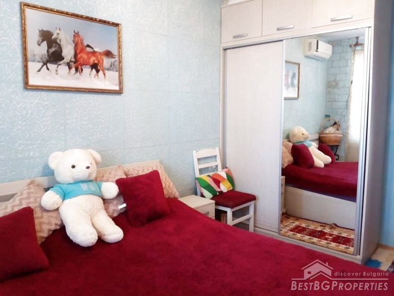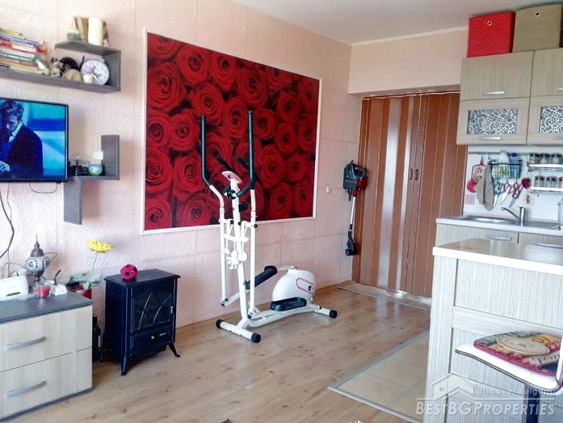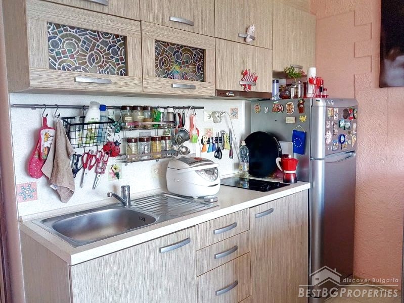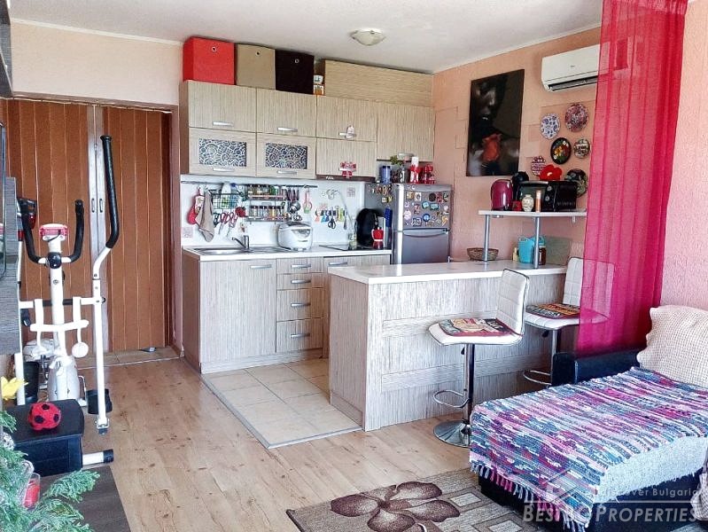 This is a one-bedroom apartment for sale, located on the fourth floor of a closed type residential complex in the sea resort of Byala.