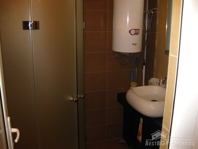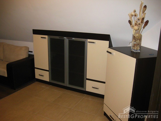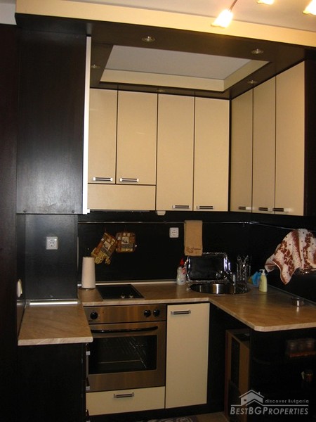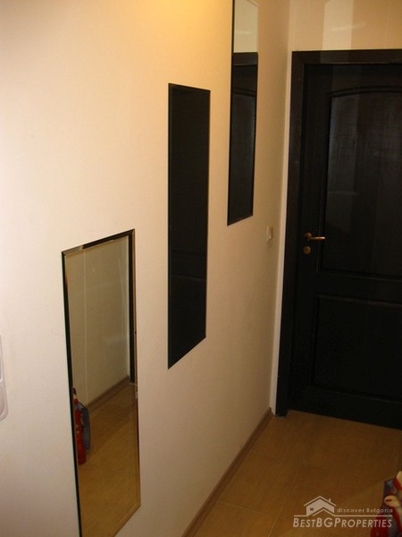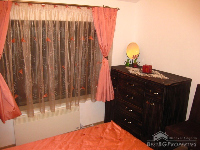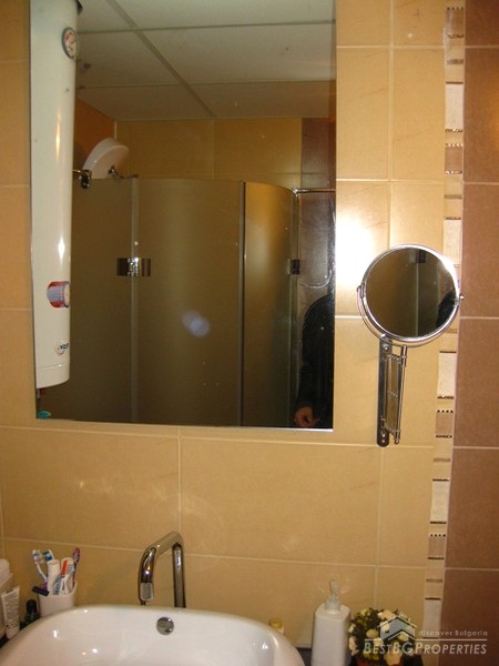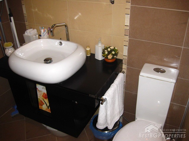 The apartment is very spacious and bright. It is for sale completely finished and luxury furnished. The finishing is done according to the highest requirements of the modern construction and includes terracotta and laminate floorings, latex painted walls and ceilings, PVC window joineries, installed switches, sockets and lighting objects, bathroom finished with terracotta and faience.