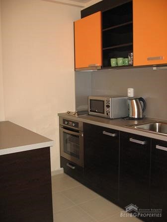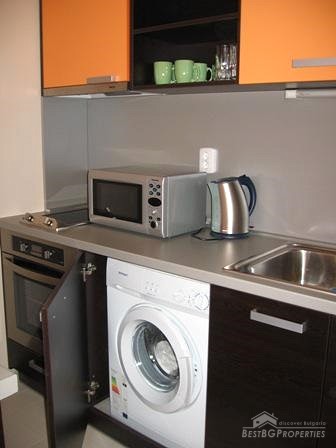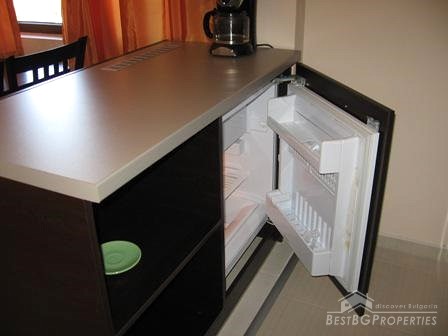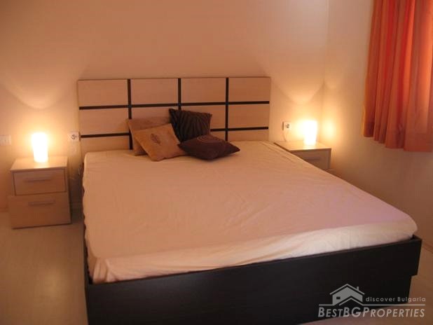 The apartment is fully furnished and equipped with new and modern furniture and all electrical appliances. It is located on the third floor of a residential building with Act 16. The building was finished in the traditional Bansko architecture style. It has a courtyard and underground parking.