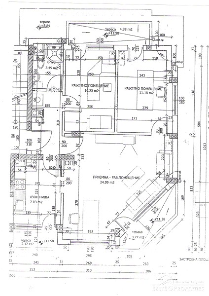The apartment has south-western, north-western and north-eastern exposure. It is part of a new residential building, fully completed and with act 16 permission for usage. The apartment is finished according the Bulgarian standards - on plastering and putty. It has cemented floors, plastered walls and ceilings, PVC window joineries (German Kommerling), five-chamber windows with K-glass, fully completed balconies with hydro isolation, granite Martinelli, and metal tracery railings, electrical installation, all extras / wiring for alarm, internet and cable TV, installed videophones / sewer, water according the project, cellar - with metal doors, common areas - completely finished with granite Martinelli, lift from Italy.