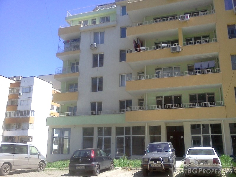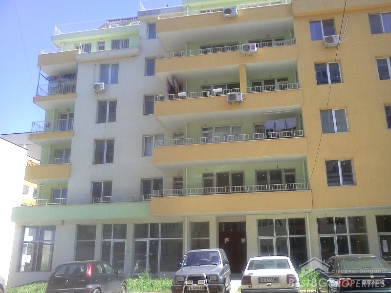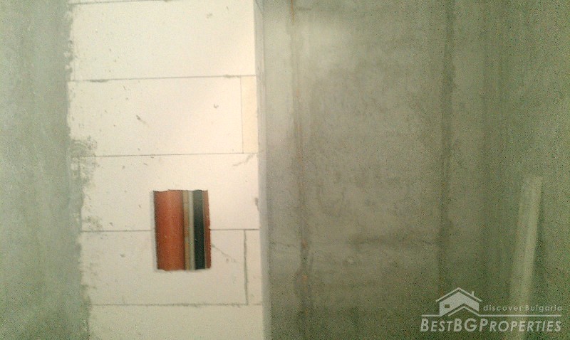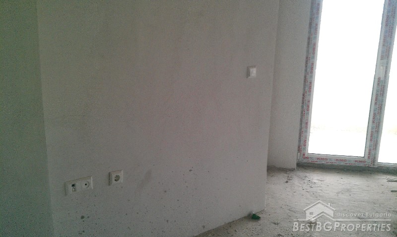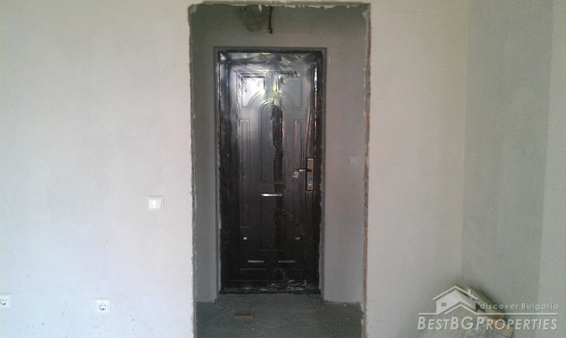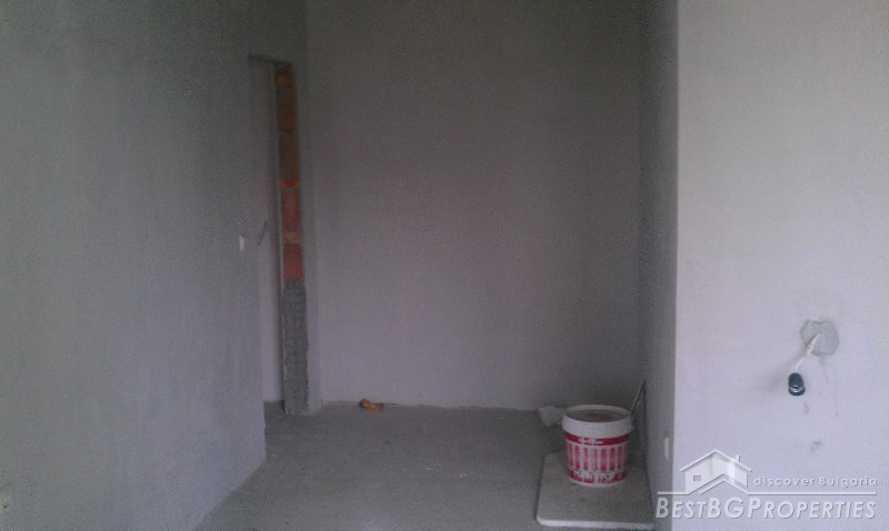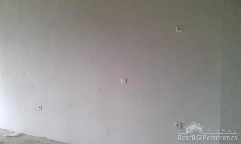 The apartment is situated on the first residential floor above some shops. It consists of one bedroom, living room with kitchen, bathroom with WC, and a terrace. The apartment is facing east. It is finished according the Bulgarian standard - the rooms are completed with plastering and putty on the walls and ceilings, bathroom - putty on floor and walls.