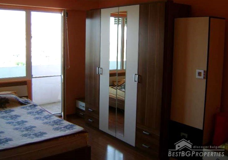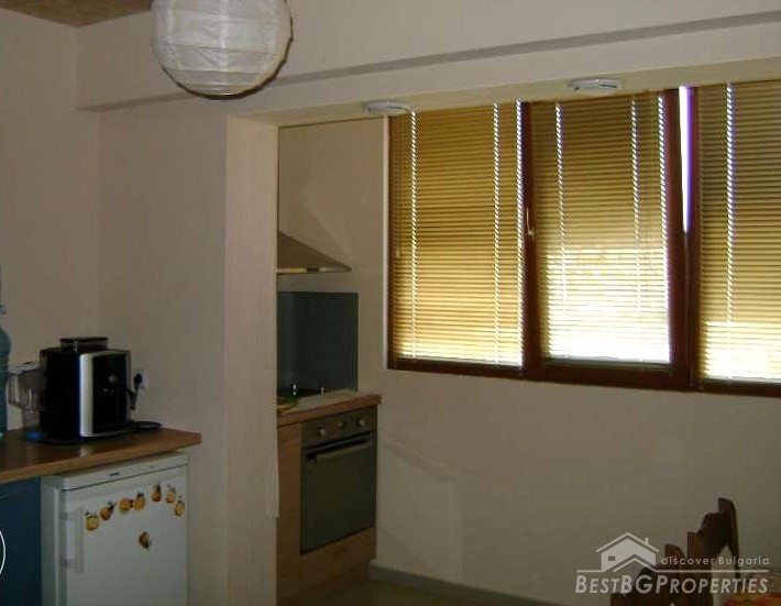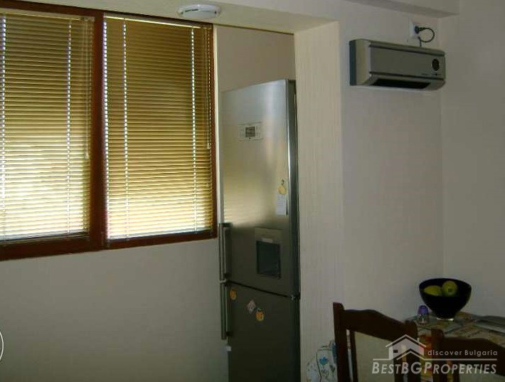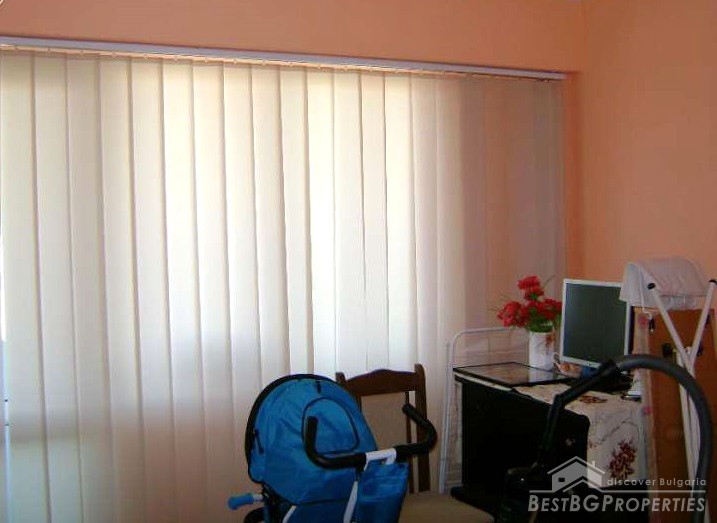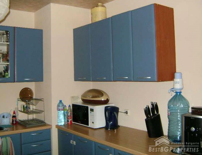 The apartment benefits with outside isolation, new replaced PVC windows, interior PVC doors. The floors are completed with polished tiles and laminate. The walls are painted with quality latex. There are all kitchen appliances. The apartment consists of a laundry room, living room with glazed terrace, 2 bedrooms with shared balcony (about 8 m in length), bathroom and a separate WC. The apartment has air conditioning in the living room - new! The price includes all kitchen cabinets the countertop and a 100L boiler! It is ready to move in right away. There is water, electricity and security system.