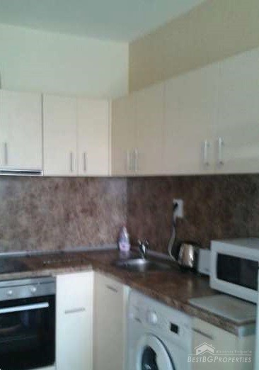 The apartment is a studio type with total living area of 41 sq m. It is sold completely furnished and equipped. The finishing is turnkey. The price includes brand new kitchen equipment, fridge, air conditioner, TV. There is electricity, water, telephone and internet. The property consists of a living room with kitchen box, bathroom with WC and a terrace with tent.