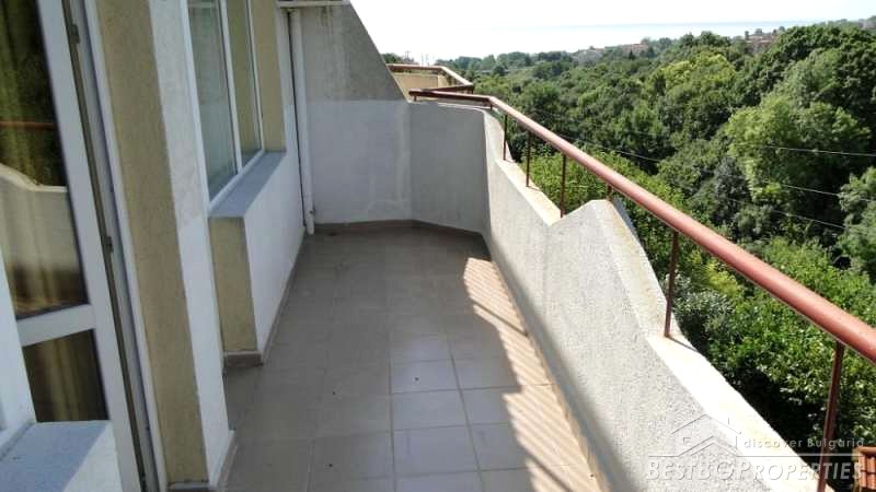 The apartment is one bedroom with clean living area of 48.40 square meters and total area of 55.83 square meters. It is on the fourth floor. The building has no elevator. The layout of the premises inside is very functional - hallway, bathroom with WC, living room, kitchen, one bedroom with space for a closet, a spacious terrace with beautiful views of city and sea.