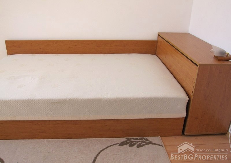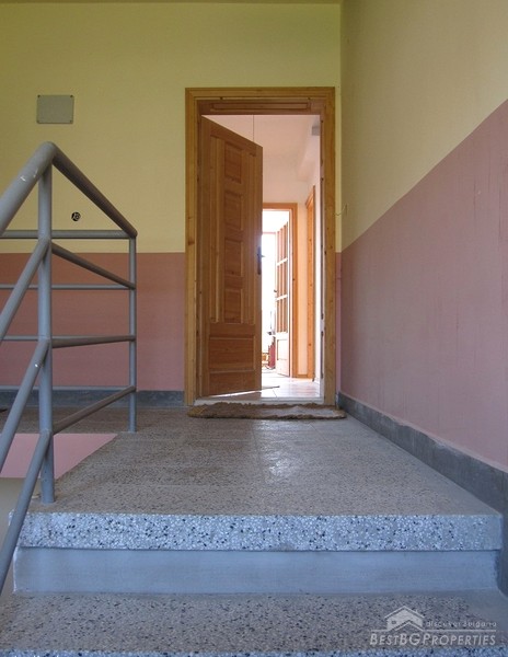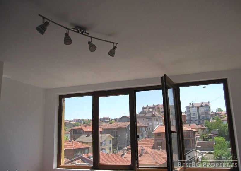 Offered for sale is a modern and spacious apartment located in a 4 storey building (8 apartments) with ground floor - shop. The building is insulated and has beautifully painted facade. The site property has very attractive location in the center of Haskovo (5 minutes walk from the town hall and the central square) on a maintained boulevard. The apartment is 64 sq m in size on the 4th floor with stunning views. It consists of 3 rooms - 2 rooms are south facing, 1 is facing north. There are two terraces - north and south. The apartment is fully finished and furnished. The rooms have laminated floors, walls are painted with latex. The lounge is finished with terracotta. The bathroom again is with terracotta floors. The outer window joineries are PVC and the inner are wood made. The price also includes a basement with an area of 12 sq m, which can be used for storage or for hobby.
