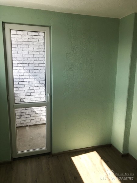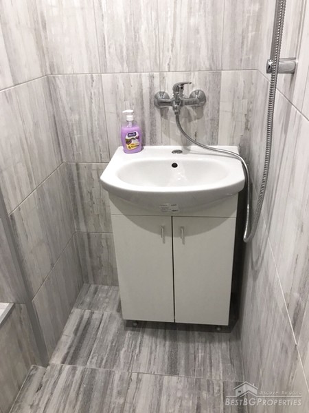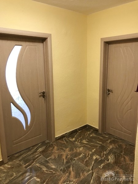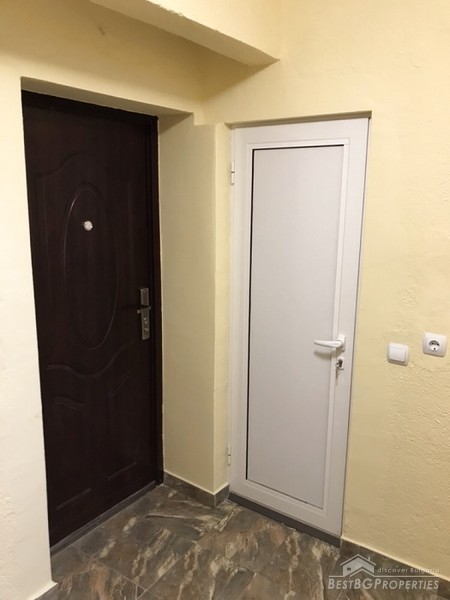 The price includes complete finishing – new plumbing and electrical installation, PVC window joineries, PVC doors, German laminate floors, granite corridors, terracotta bathroom with equipment Vidima. The front door is metal.