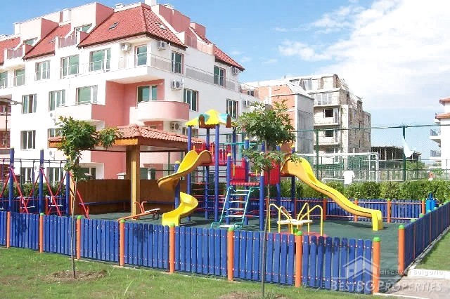 The complex was finished in 2008 and has Act 16 permit. It is well landscaped, has an outdoor swimming pool, a playground, tennis and football courts, 24-hour security, private parking, 2 restaurants, 2 day bars and a supermarket. The complex is located near the sea, the Old Nessebar, the famous Sunny Beach resort and the Aquapark.