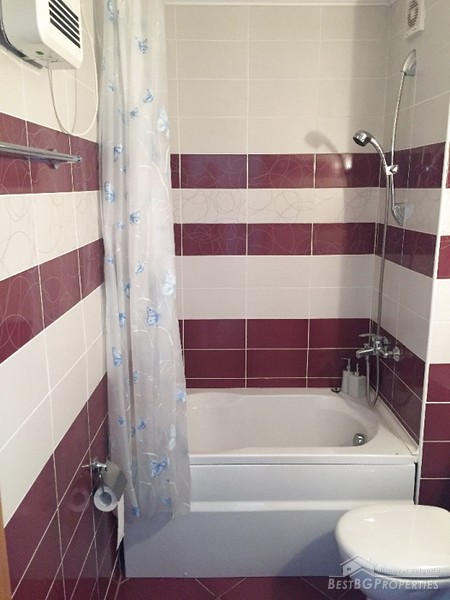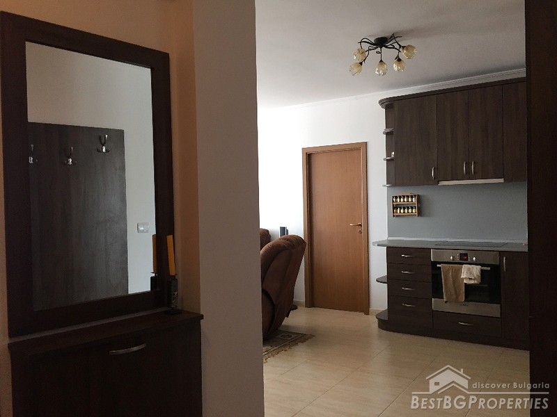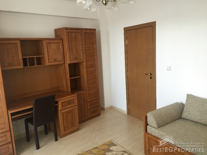 The apartment has total living area of 81 sq m. It consists of two bedrooms, a living room with kitchen box, two WCs, bathroom, terrace and a corridor. The living room is equipped with a French fireplace. The apartment is fully furnished as shown in the pictures.