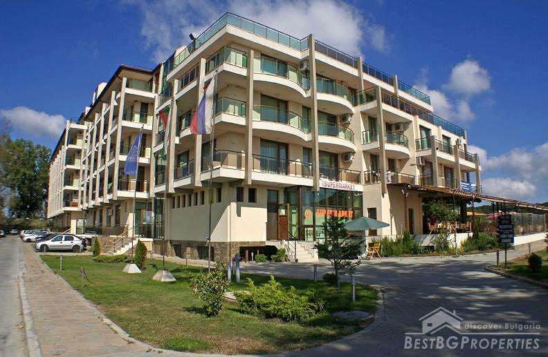 The complex has a large swimming pool, shop, cafe / restaurant, spa salon and many other amenities for its guests and owners. This is a wonderful property in a quiet and peaceful area. Good investment with guaranteed income during the summer season.