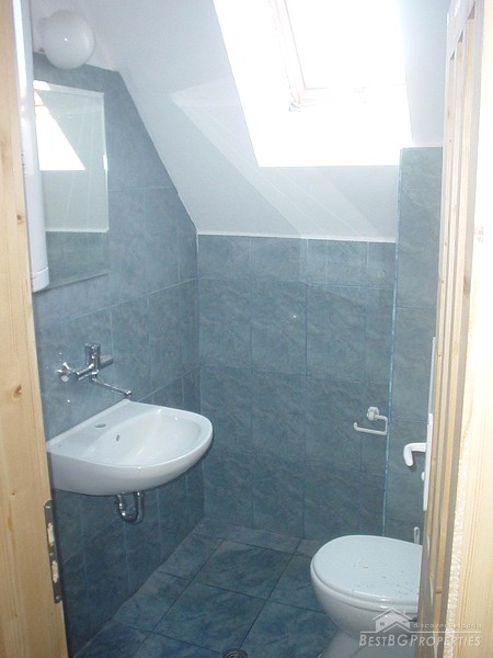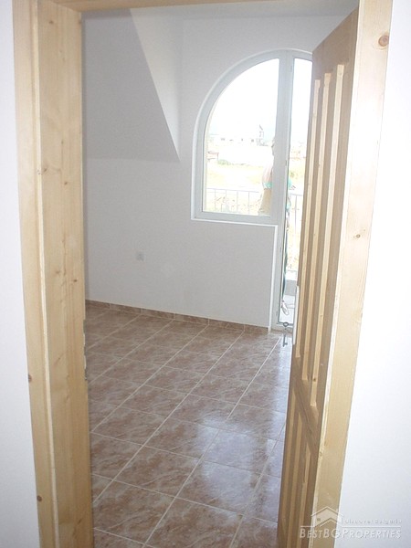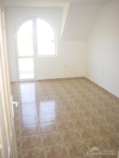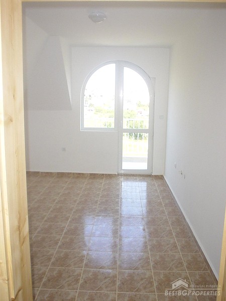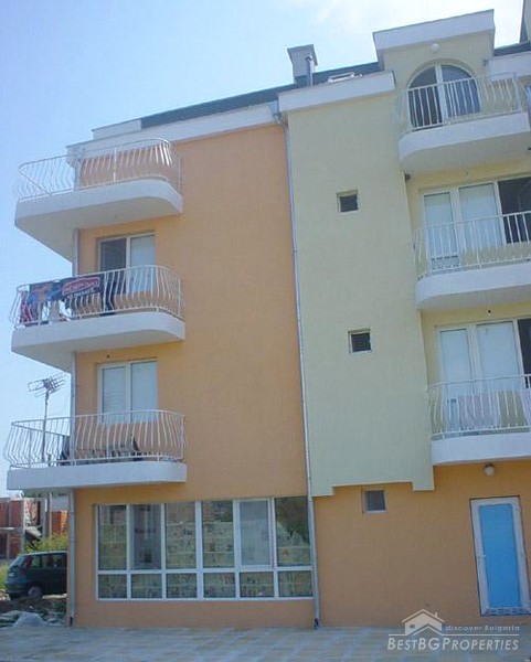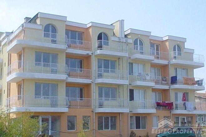The apartment is located at the same distance from both beaches. It is at the beginning of the resort, close to the entrance from the main highway. It is also near the aqua park. The apartment is situated in a new building with act 16 which consists of three residential floors and a ground floor with shops. It is on the last-third floor of the building. The apartment is a one bedroom type and comprises total living area of 65 sq m. It is distributed between a living room with kitchen box, one bedroom, bathroom with WC with a roof top window and two balconies with nice views. The apartment is for sale "on key" stage.