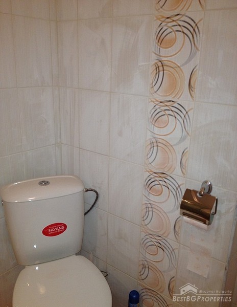 The apartment is offered completely finished and furnished and ready for living. It comprises with total living area of 29 q m and is situated on the third floor of the building. The studio consists of a room with kitchen box, lounge, bathroom with shower cabin and WC, a nice balcony with view. The apartment has the possibility to accommodate 2 persons + 1. It is 10 minutes away from the beach and the center of Primorsko.