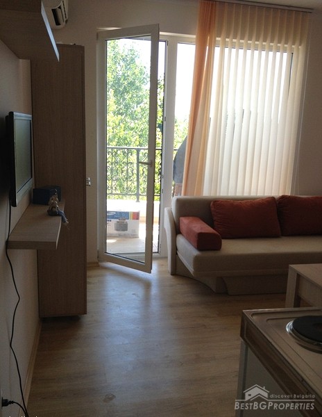 It is a studio type of apartment, located in a new luxurious residential building, close to the rope bridge and the Southern Beach of Primorsko. The building is new construction, brick built on four floors. Nearby there is fast food, the central street of Primorsko, many restaurants and bars. The building does not have maintenance tax.