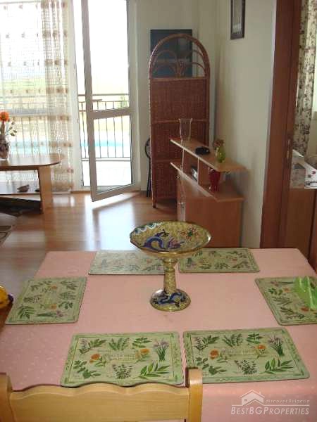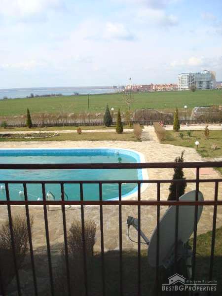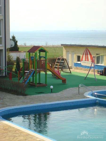 The apartment is situated in a closed type residential complex, on the first line from the sea. The distance to the beach is only 100 meters. The complex has many amenities including a swimming pool, children’s playground, landscaped areas and parking.
