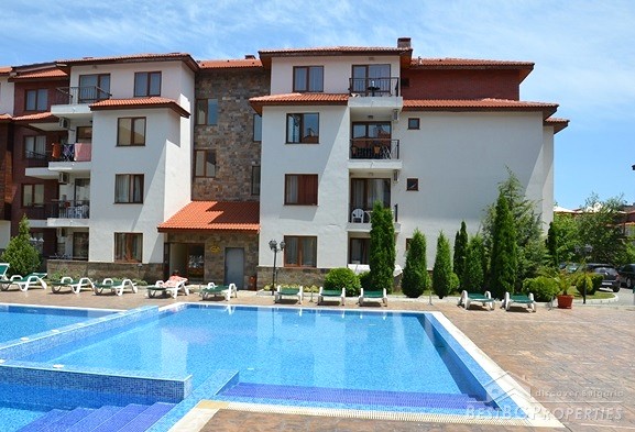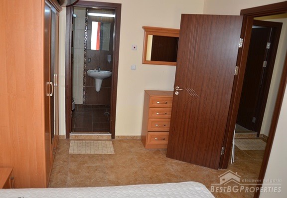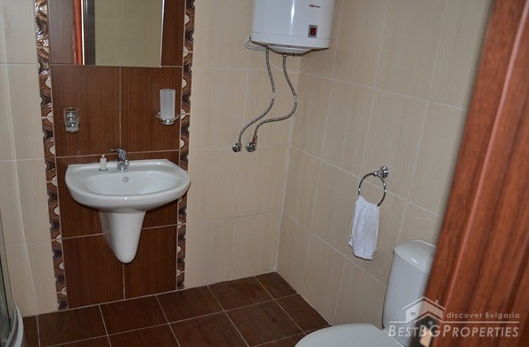 It consists of living room, kitchen, 2 bedrooms, 2 bathrooms with 2 toilets, balcony. The apartment is part from a fabulous complex, completed in the traditional Bulgarian style, located in the resort town of Ravda.