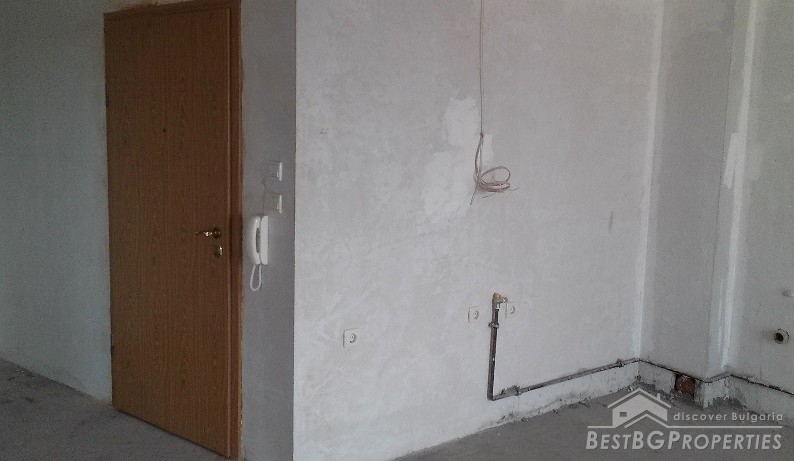 The property is completed according the Bulgarian standards – on plastering and putty. Thus the final finishing is left for the future owner decision. The apartment has gas supply, water and electricity.