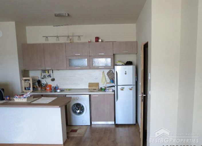 The apartment is fully furnished and equipped – ready for use. It comprises with total living area of 90 sq m and consists of two bedrooms, a corridor, bathroom with WC, large living room with kitchen box and a closet. The price also includes a basement.