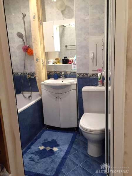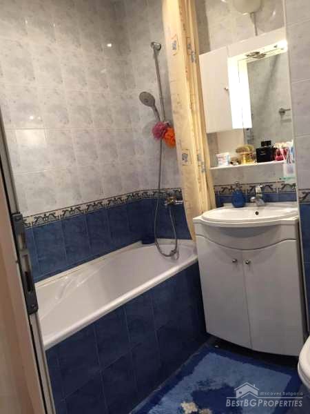 The apartment consists of an entrance hall with wardrobe, bathroom with WC, living room, one bedroom and a kitchen. Unfortunately there is no balcony. The finishing includes venetian plaster, PVC windows, quality floorings, bathtub, functional kitchen, etc.