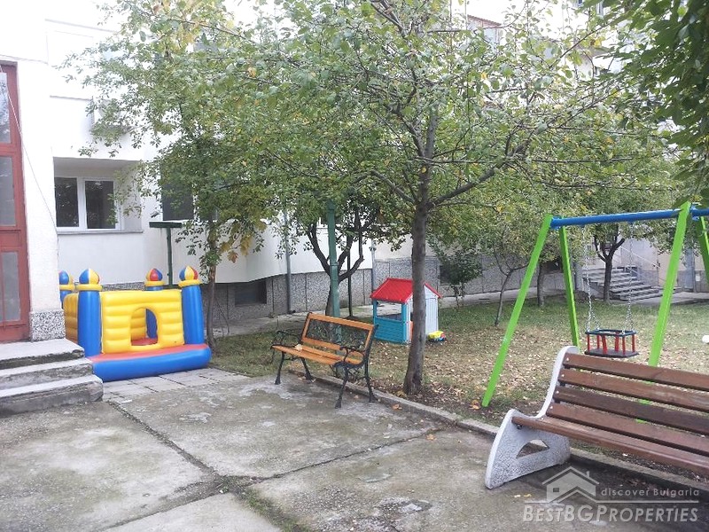 The property is situated close to the Student’s town, Fantastiko store and Simeonovsko Shose Blvd. The building has received Act 16 in 2009. It benefits with spacious common parts, maintained entrance, patio with playground and private parking.