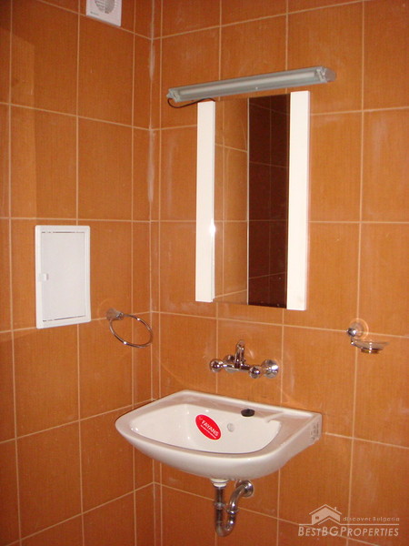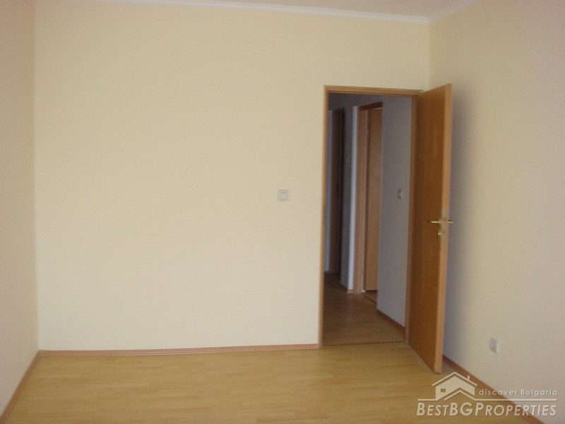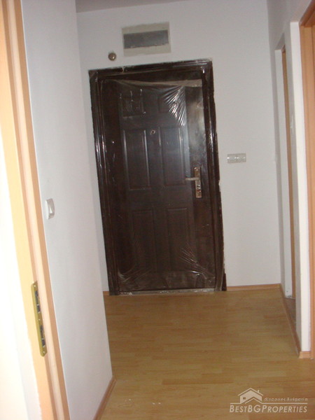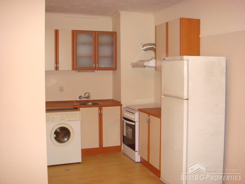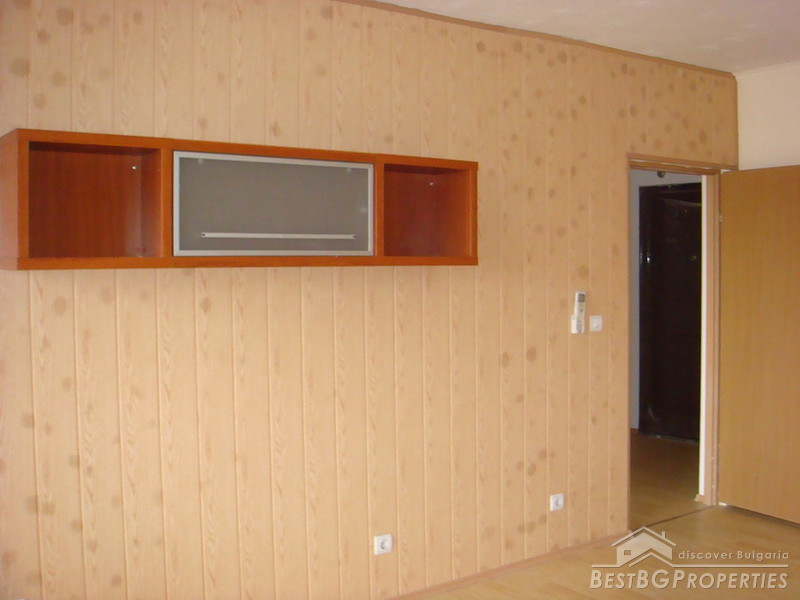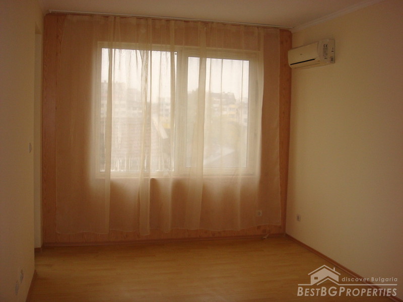 The living area is functionally distributed between a kitchen box with dining area - west exposure, large panoramic windows, fully furnished with new electrical appliances (washing machine, stove, absorber, fridge); Living room - west exposure, large windows, covers and curtains, also a balcony which is shared with the bedroom; Bedroom - bright and spacious with floorings and curtains. Large bathroom and a separate dry premise - closet. The lounge is large and it could fit a wardrobe.