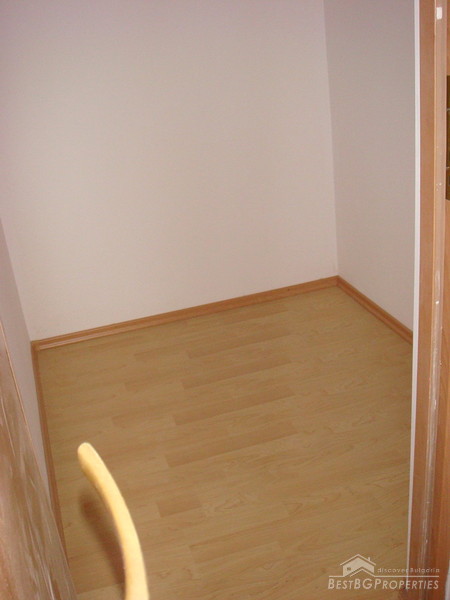 The apartment is stylishly finished with high quality laminate, faience, and terracotta in the bathroom. There is a solid front door, interior doors, and PVC window joineries. The heating is through air conditioners mounted in every room. The apartment is set on the fourth floor of the six floored building. It has clean living area of 68 sq m and 4 sq m of common shares.