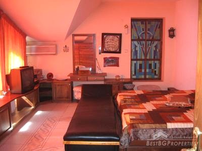 The apartment is also for sale fully furnished. It is notary divided into two flats, each level has its own entrance (220m2 is the lower level and 130m2 is the upper level). The flat has an underground garage of 40m2 (for two cars) for additional price.