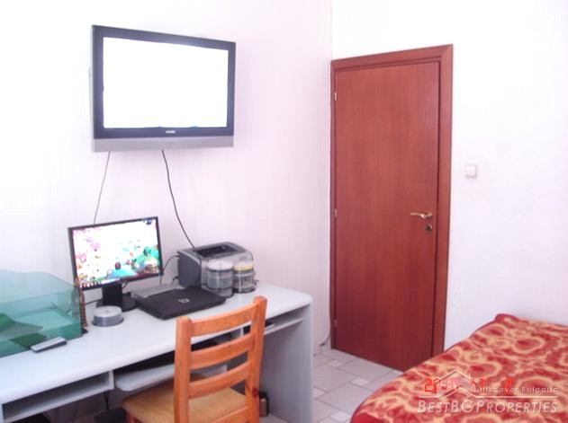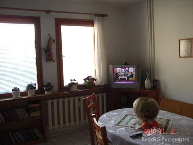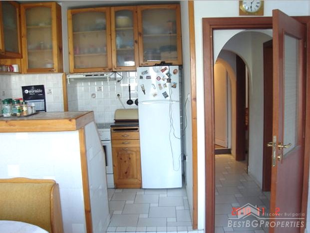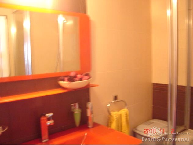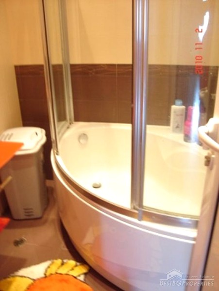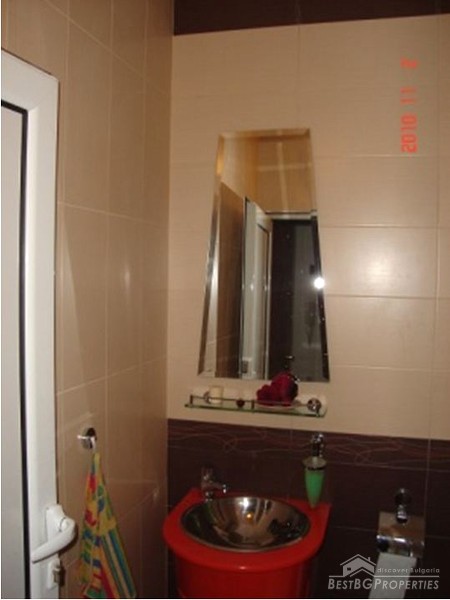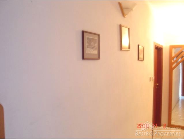 The apartment has total living area of 125 sq m. It is finished with terracotta floorings in the bathrooms, kitchen and the rooms. The walls are with tiles in the WC, latex in the corridor, bedrooms, kitchen and living room.