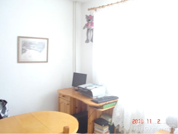 The apartment is connected to warm and cold water, central heating, telephone, and internet. It has south-eastern exposure and view over the Vitosha Mountain. It is situated in a panel residential building finished in year 1997. It is a five-story building with no elevator.