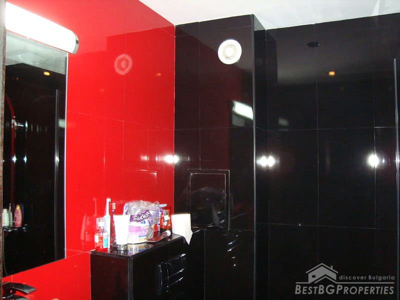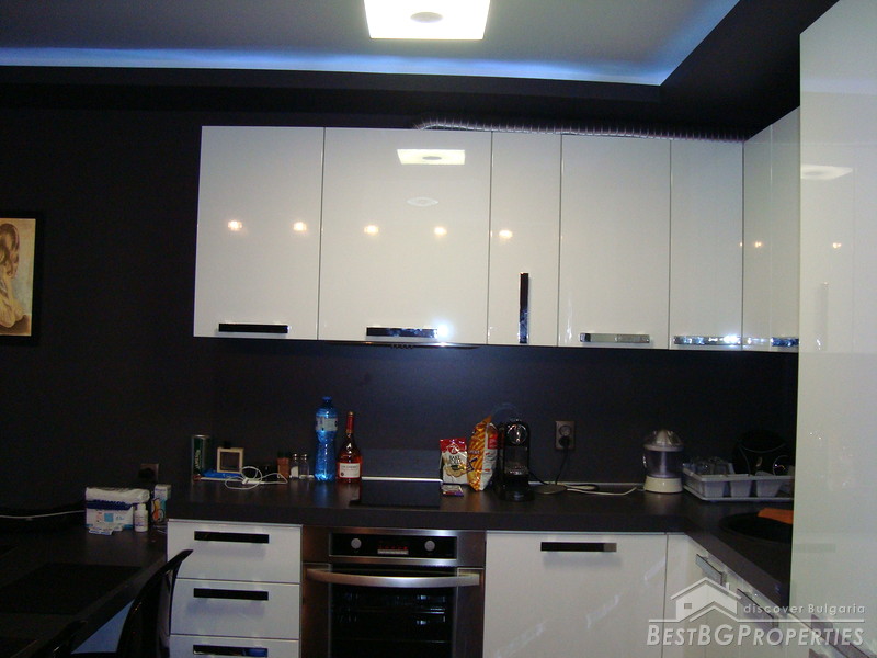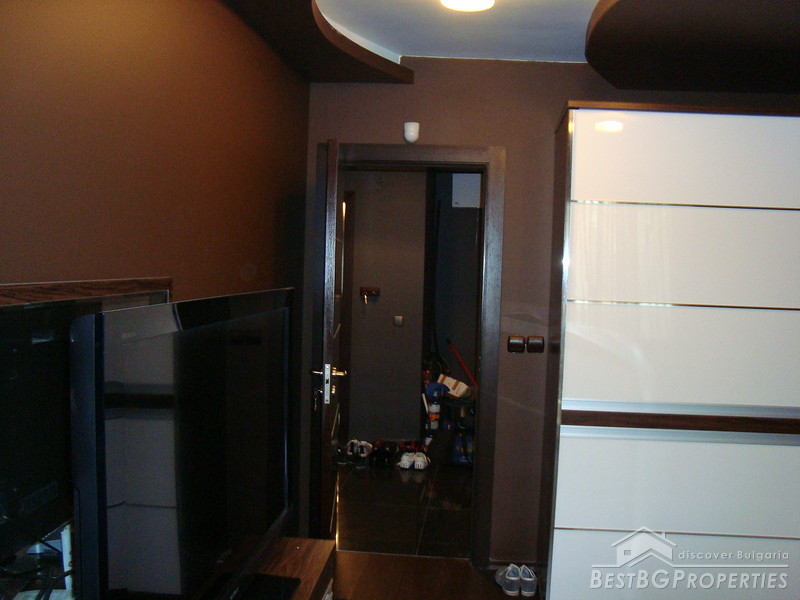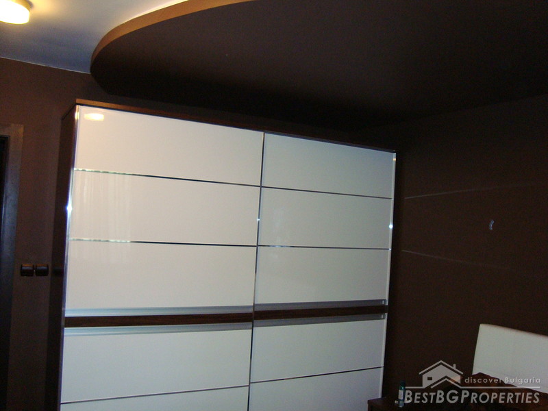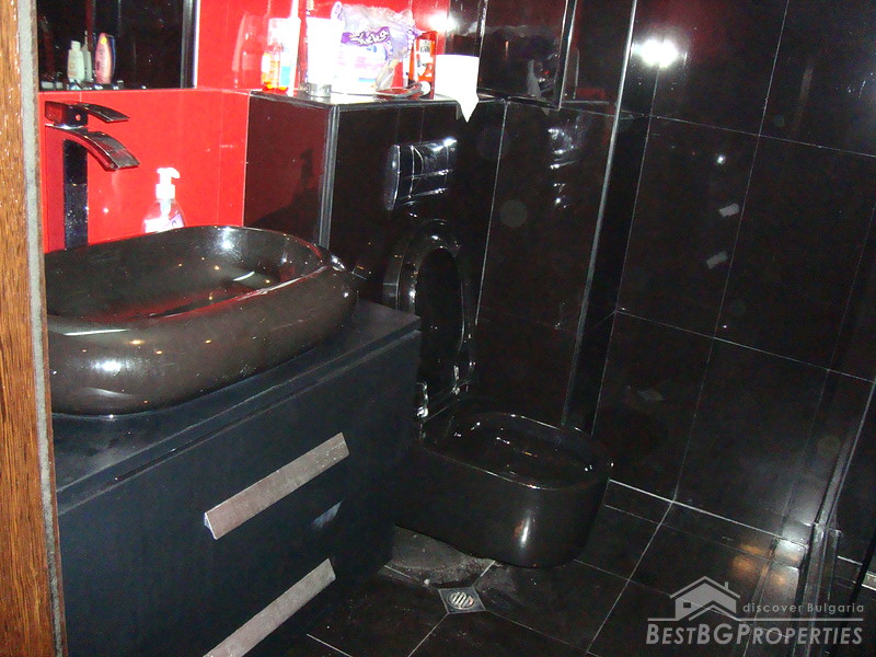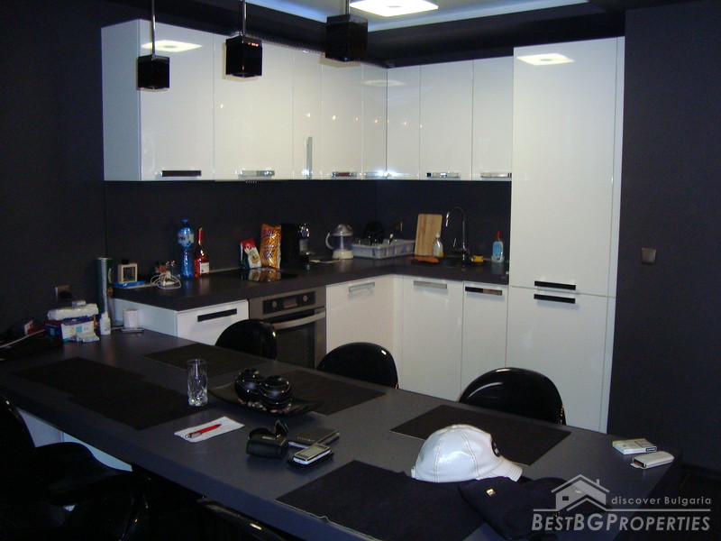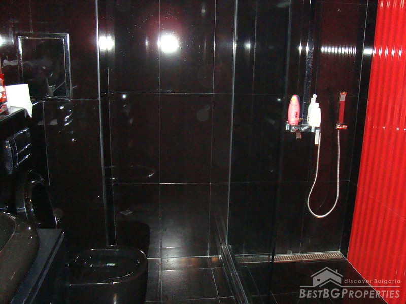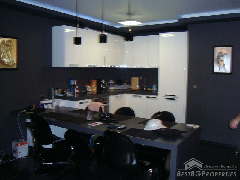 This is a super luxury, furnished and equipped 1-bedroom apartment for sale, located in the capital of Bulgaria - Sofia. The apartment consists of a large living room with kitchen box, finished with - flooring - granite, walls of leather wallpapers, hand knitted (€ 100 sq m) and latex paint, Italian fitted kitchen from lacquered 'MDF' profile - TEKA, fully equipped with electrical appliances. Suspended ceiling with sound insulation. Bedroom: parquet and latex paint, built-in wardrobe and bedroom, built-in safe, bathroom and toilet - Italian faience and terracotta - Martinelli. Two balconies finished with granite. The apartment is fitted with video surveillance system - 6 cameras, paid SOT security system for one year, Internet.