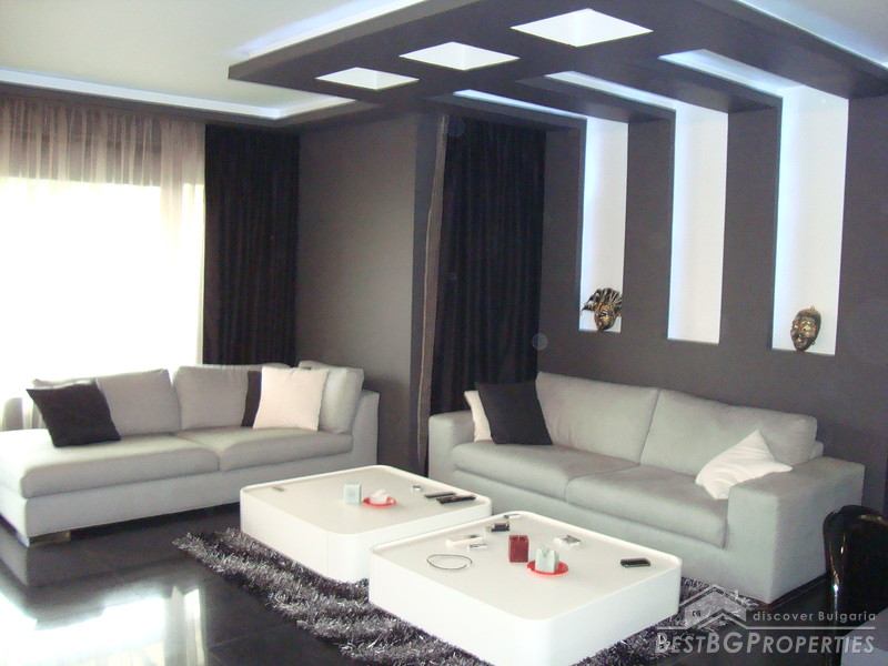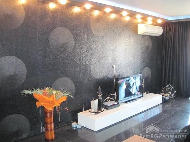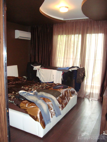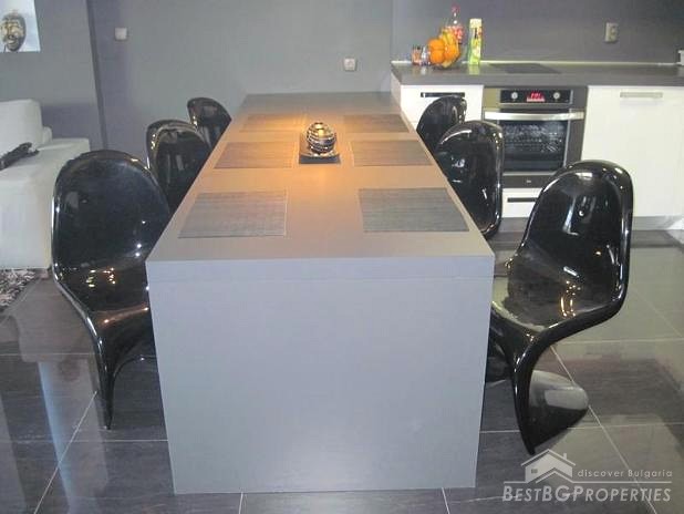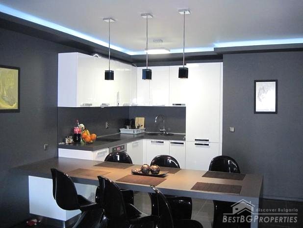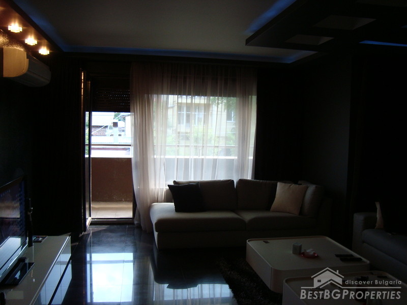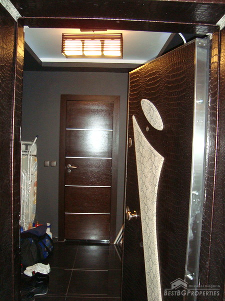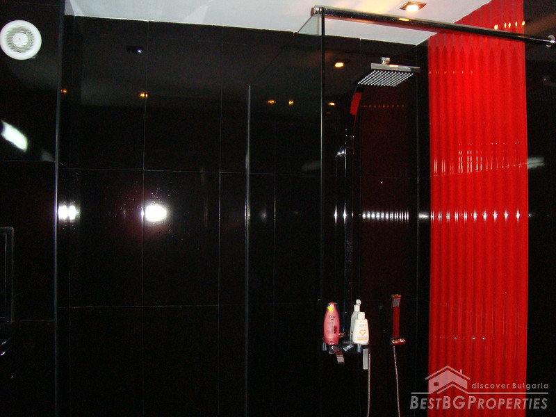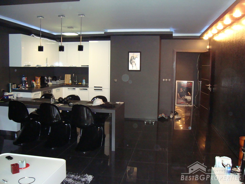 This is a super luxury, furnished and equipped 1-bedroom apartment for sale, located in the capital of Bulgaria - Sofia. The apartment consists of a large living room with kitchen box, finished with - flooring - granite, walls of leather wallpapers, hand knitted (€ 100 sq m) and latex paint, Italian fitted kitchen from lacquered 'MDF' profile - TEKA, fully equipped with electrical appliances. Suspended ceiling with sound insulation. Bedroom: parquet and latex paint, built-in wardrobe and bedroom, built-in safe, bathroom and toilet - Italian faience and terracotta - Martinelli. Two balconies finished with granite. The apartment is fitted with video surveillance system - 6 cameras, paid SOT security system for one year, Internet.