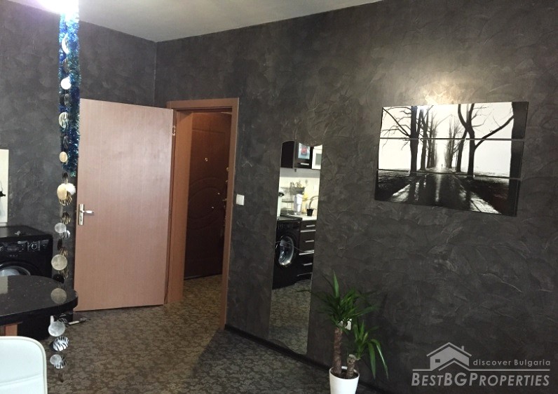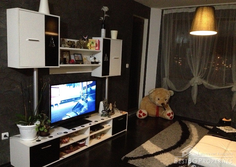 The apartment is fully furnished and has all necessary appliances and equipment – ready to move in! All of the furniture is brand new! The property is situated in a new residential building with Act 16 since 2010 year. The building is gasified.
