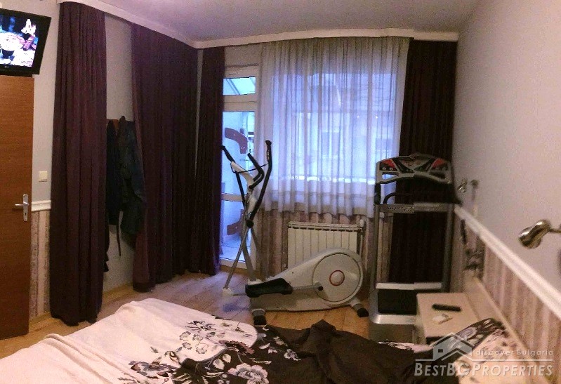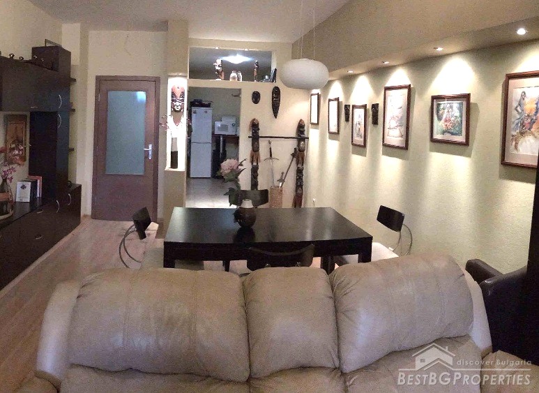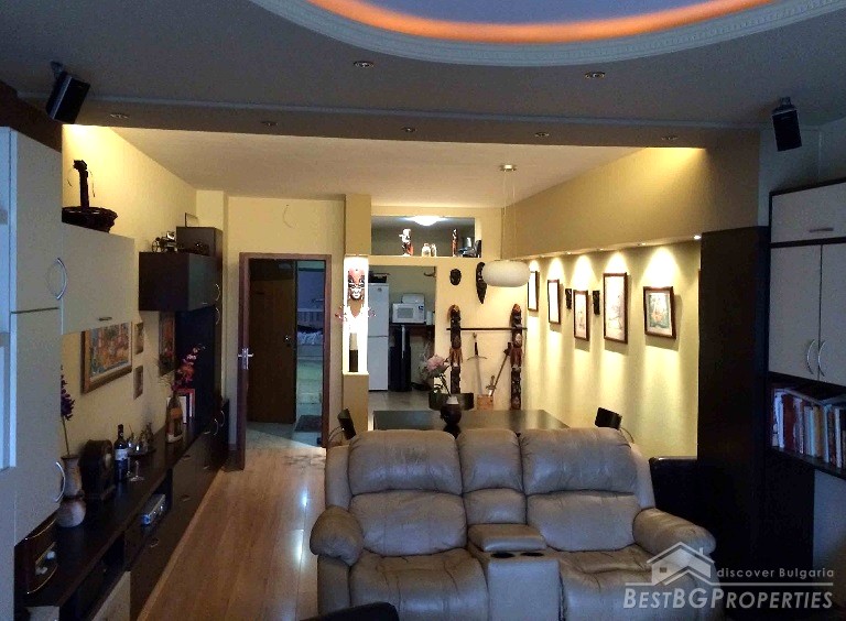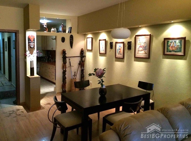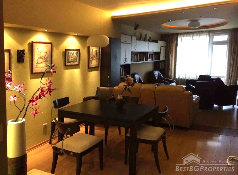 The apartment has total living area of 120 sq m and also comes with a garage. It is located in Gotse Delchev neighborhood of Sofia City, finished in 2007, brick construction, luxury finishing with quality materials.
