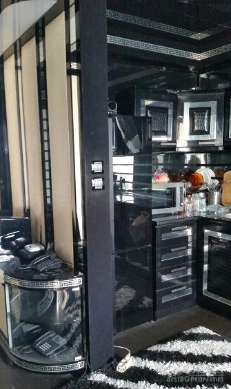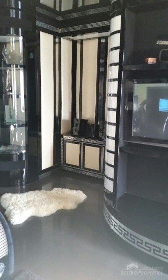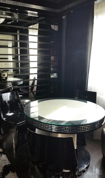 The flooring are tiled, the walls are decorated with mirrors and murals. The bathroom is faience finished. The windows are PVC. Central heating. The living room and bedrooms have air-conditioners. There is internet and telephone, alarm and armored front door.