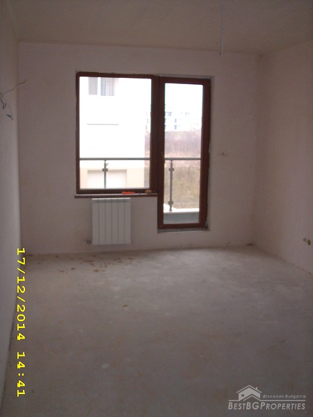 The living area is distributed between three rooms and two premises for a bathroom and WC. The apartment is finished according the Bulgarian standard – on plastering and putty. It needs final finishing before you could move in. There are PVC window joineries, intercom, and perfect views of Vitosha Mountain.