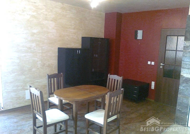It is new, luxury, designer finished and fully furnished. The apartment is one-bedroom type and has total living area of 88 sq m. It consists of a living room with kitchen box, corridor, one bedroom, and a bathroom with WC.