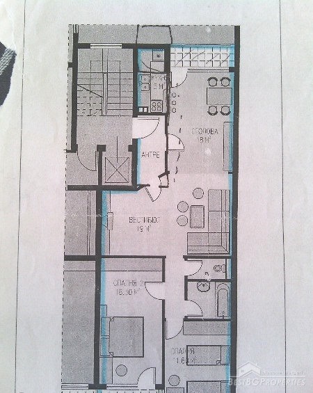 The property is situated in a very communicative area with convenient public transportation, schools, kindergartens, hospitals, banks, parks, etc. The exhibition is towards east-west. The total living area is 110 sq m. The apartment consists of a hallway, 2 bedrooms, living-dining-kitchen, bathroom, 2 large terraces and a basement.