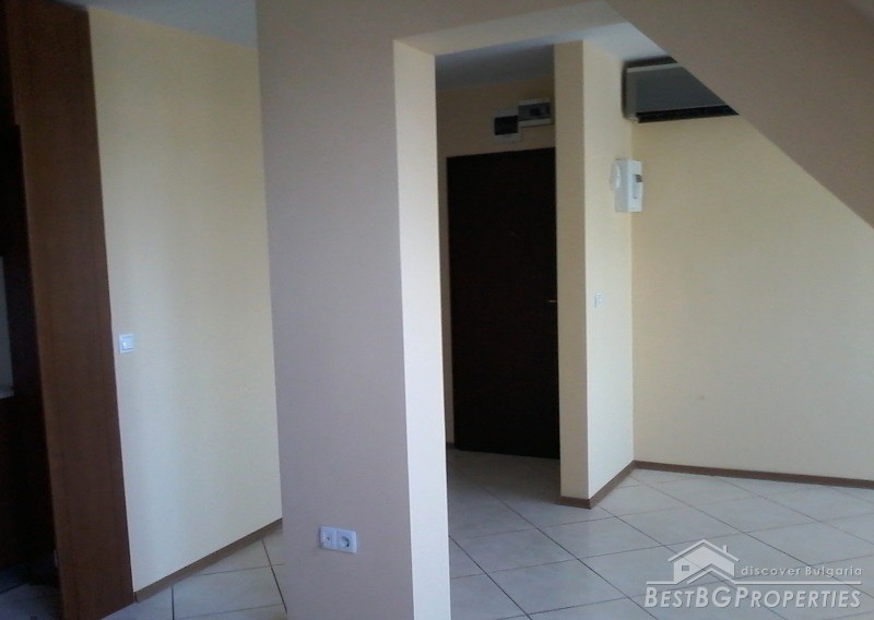 The apartment has total living area of 60 sq m. It benefits with large terrace with beautiful Vitosha views. The living area is distributed between a living room with kitchen box, corridor, one bedroom and a bathroom with WC.