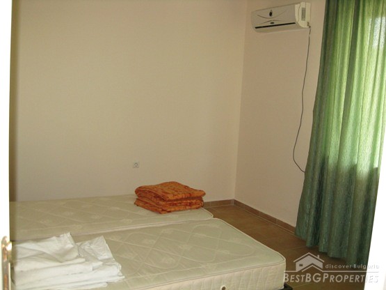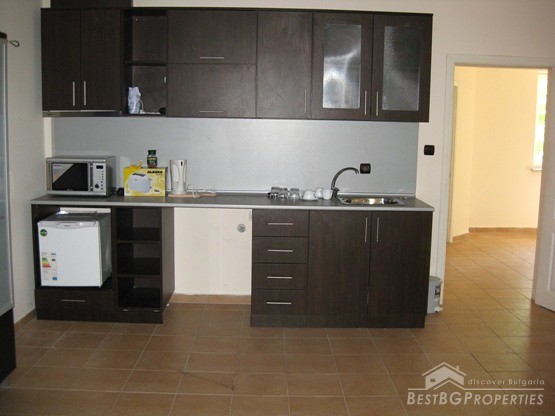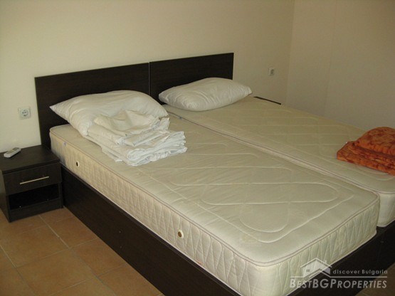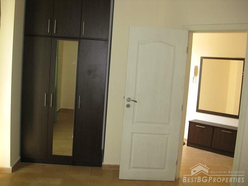 This next suggestion is for an apartment located in the top Bulgarian sea side resort of Sunny Beach. It is situated in the elite and quiet part of the resort, only 50 meters from the beach. The beach is in an area of protected sand dunes. The apartment has a total living area of 76.21 sq m with 7.72 sq m of common parts. It is located on the second floor of a six floors building. It is one bedroom type of apartment and consists of a wide hallway, bedroom, spacious living room, two terraces and a bathroom with WC. The property is luxuriously, fully furnished. The living room includes a small table, sofa, chairs, TV and TV stand with wardrobe. There is also a fully equipped kitchen box. The bedroom has one big double bed, nightstands and a big wardrobe with mirror. The apartment is air-conditioned in every room. It is finished with high quality materials by the highest standards. The floorings are with terracotta and faience, the walls and ceilings are painted with latex paint. The window frames are PVC and the doors type is MDF. The bathroom is finished with faience tiled floor and walls. It is fully equipped with shower cabin, sink, cupboards and sanitary equipment. The apartment has prime location. Nearby there is a new stadium and an Aqua Park. All necessary amenities, such as bars, restaurants and shops, are also going to be at your service.