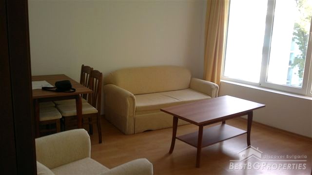The offered apartment is one bedroom type and has total living area of 64 sq m. It is sold fully furnished with very functional distribution of the premises and beautiful view of the swimming pool. It is set on the fourth floor. The apartment is brand new (no one ever lived in it) despite the fact it was purchased in 2008 year still under construction.