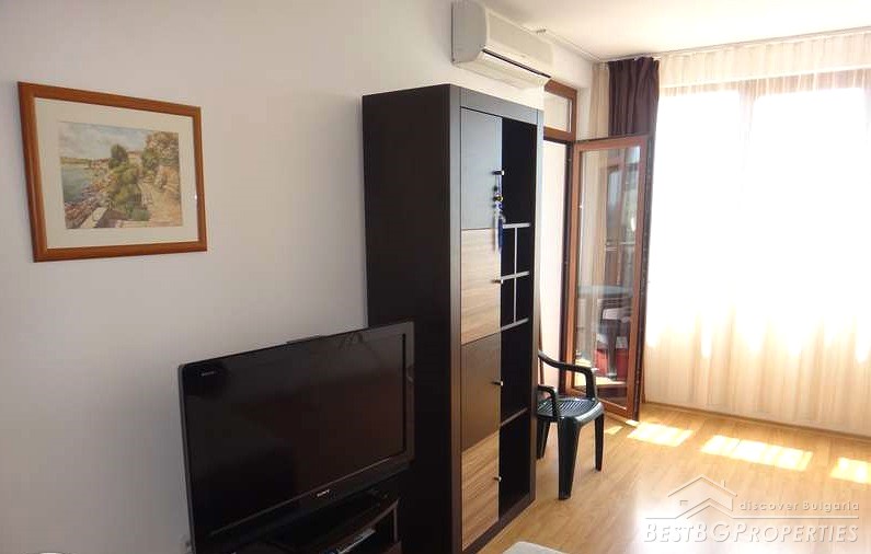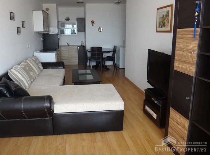 It is a one-bedroom, bright apartment, located in a small gated complex with magnificent sea views. The complex is situated in a picturesque area between the resort Sunny Beach and Kosharitsa. It is only 5 km from the ancient town of Nessebar.
