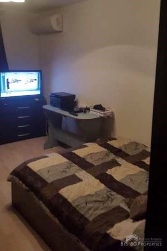 The total living area is 93 sq m. It is distributed between three rooms, bathroom with WC and three balconies, one of which is glazed and used as a kitchen. The price includes part of the furniture.