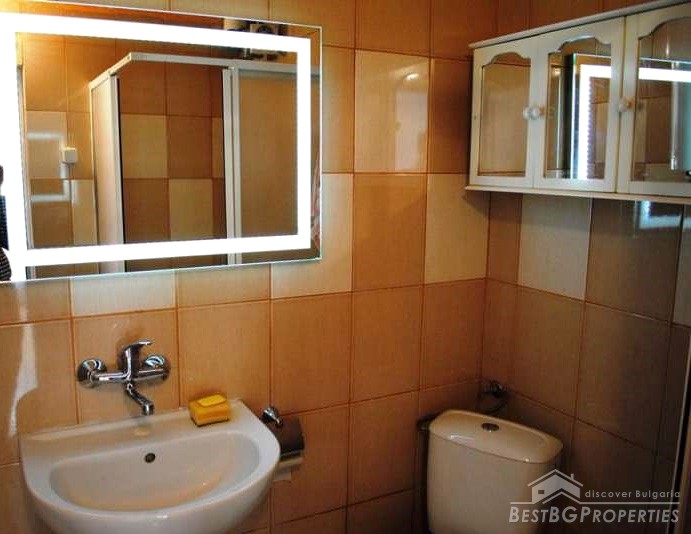 The apartment is very sunny and with functional distribution of the premises. It consists of a lounge which was used as a kitchen (it has water), large room and a bathroom. The total living area is 30 sq m. The studio is situated on the first floor out of three.