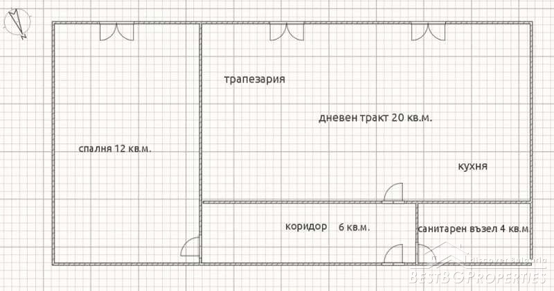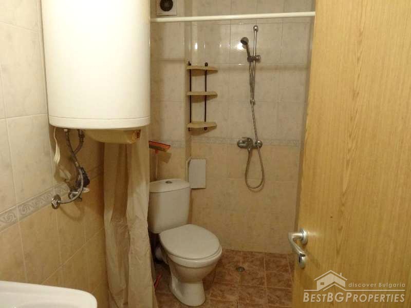 The apartment comprises with total living area of 63 sq m. It consists of a living room – 20 sq m, one bedroom - 12 sq m, hallway and a bathroom with WC. The property is entirely south facing. The price includes partial furniture, equipment and underground parking – 15 sq m. The finishing is turnkey.