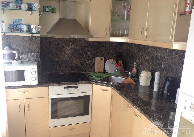 The apartment is fully furnished with luxury furniture and equipped with modern appliances of famous brands. It is on the third floor of a brick residential building finished in 2006 year. The building is equipped with elevator.