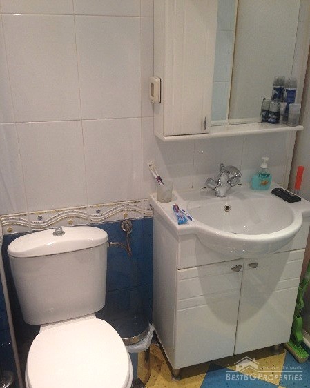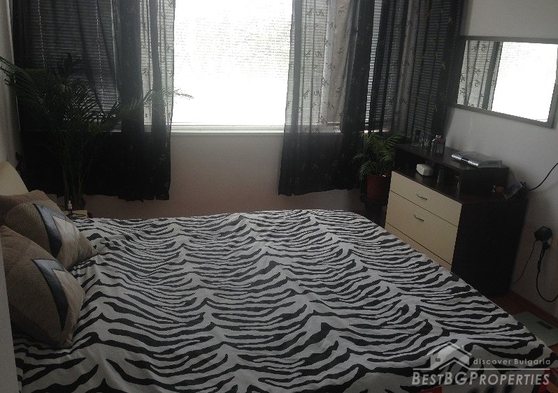 The apartment has clean living area of 75 square meters and total area of 96 sq m. It is south facing and consists of a living room, kitchen, spacious bedroom, bathroom and a large terrace. The price also includes a basement and a parking space in the yard in front of the building.