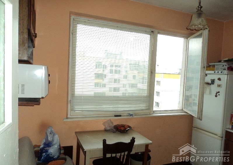 This is a cheap, panel apartment for sale, located on the sixth floor of a nine-storey residential building in the city of Varna.