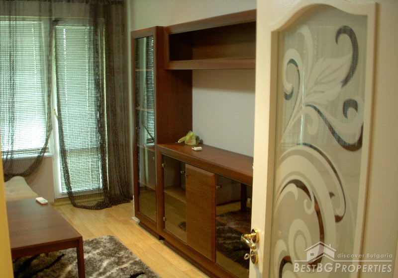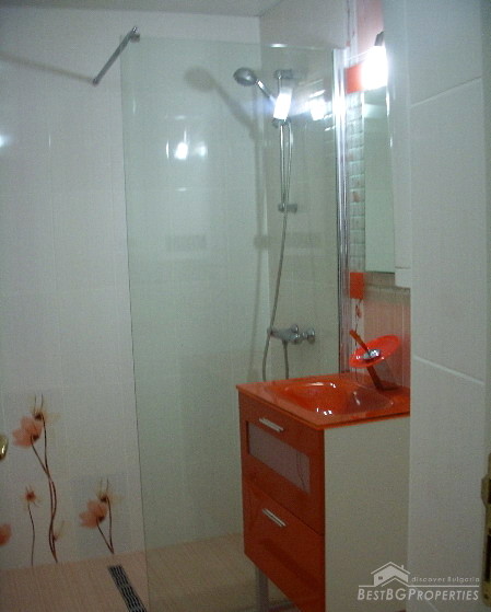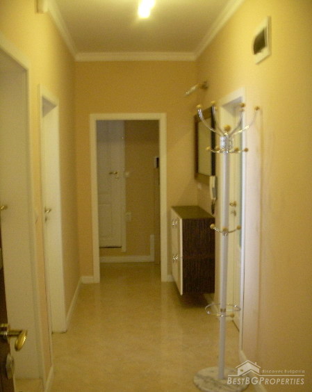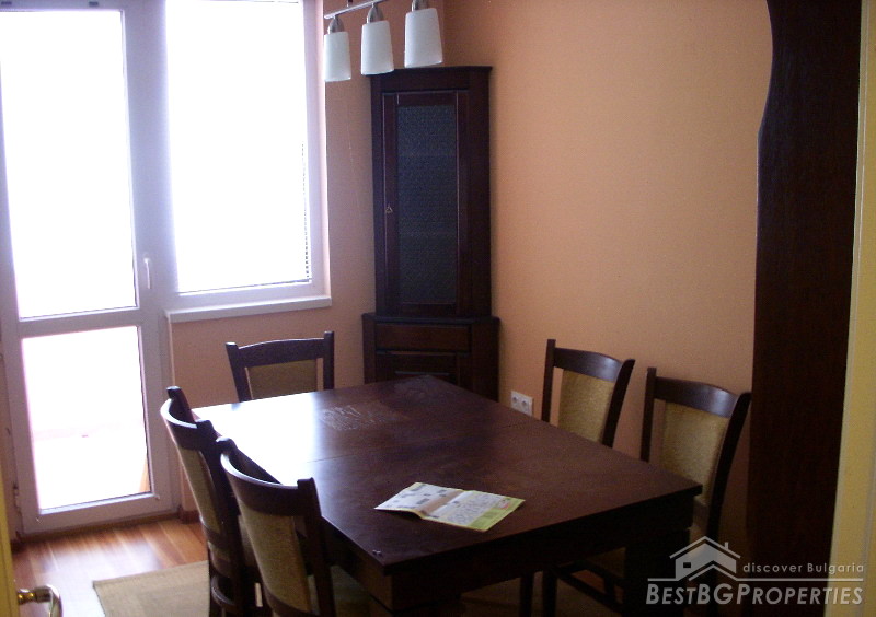 The apartment consists of a large kitchen, living room, two bedrooms, laundry room, bathroom and toilet / separate /, and a basement. The apartment has a living area of 96 square meters fully furnished. The finishing is turnkey - new floors, PVC windows, kitchen with appliances, designer furniture. The apartment is insulated. There are air conditioners.