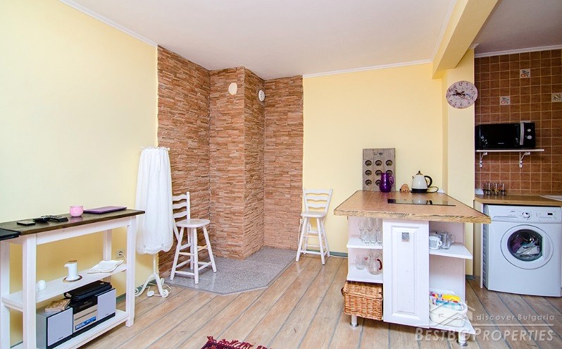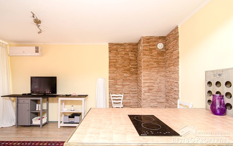 The apartment is fully finished and furnished with lots of taste and provides individual style and comfort. The terrace offers spectacular views of the sea and cape "Galata".