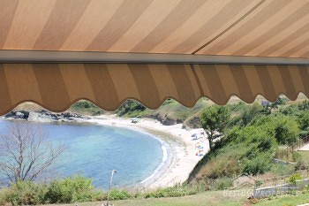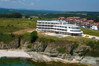 The apartment is situated on the front line very near the beach, which is only 20 m away. The building is constructed in a shape of a ship, which is situated on a small peninsula. The main advantage of this design is that it provides you with a number of wonderful views. You get equally good views from the sofa in the living room as from the balcony of the two rooms, which overlooks the beach and the swimming pool.