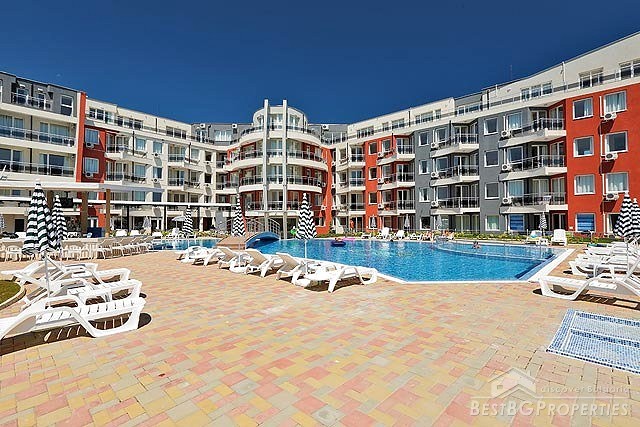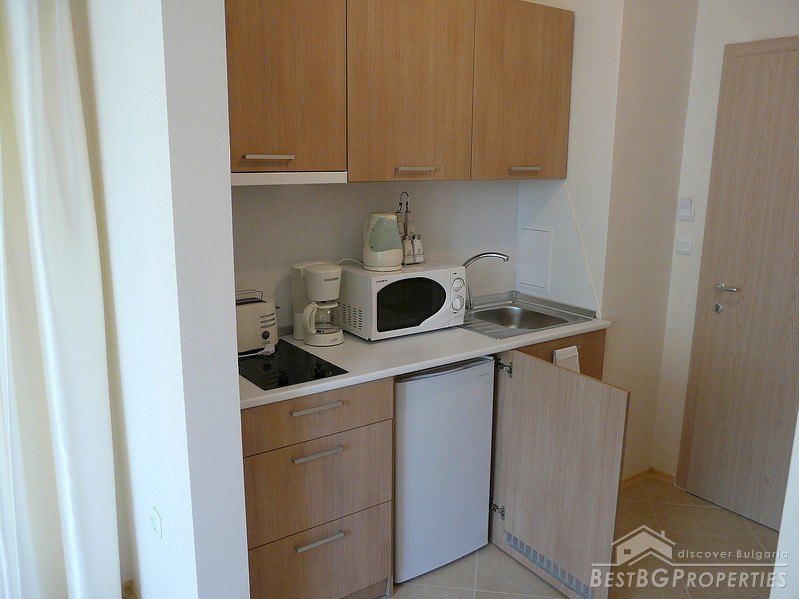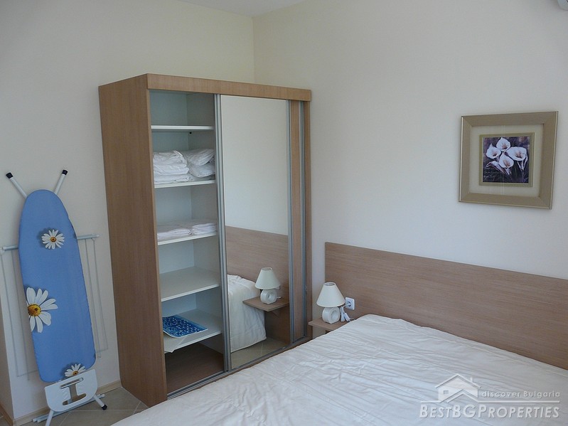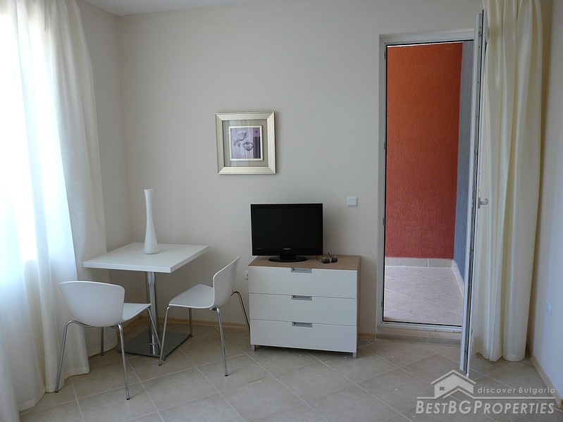 We are offering you this nice cozy apartment for sale located in a small resort village on the Bulgarian seaside in between towns of Kiten and Tsarevo. It is a studio, 35.52 sq m in size. The apartment is located on the second floor of a luxury residential complex. It has wonderful garden view, and is fully equipped and furnished, ready to use. It is suitable for own use or renting out.